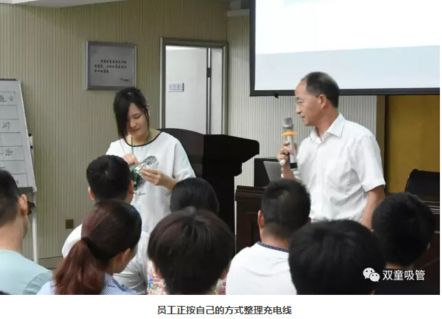 在學(xué)習會(huì )開(kāi)場(chǎng)前,“雙童”樓仲平現場(chǎng)邀請了員工整理蘋(píng)果電腦充電線(xiàn),結果員工認真的繞了好幾次也沒(méi)達標。原來(lái),整理充電線(xiàn)雖然沒(méi)有什么技術(shù)含量,但單憑細節來(lái)說(shuō),我們隨手整理的往往容易散亂開(kāi)來(lái),而按照標準流程進(jìn)行操作整理,關(guān)注到每一個(gè)細節時(shí),充電線(xiàn)就不會(huì )散!這個(gè)小互動(dòng)也引導員工們認知到無(wú)論做什么事情都應該關(guān)注細節,認知細節的重要性!