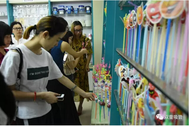 移步樣品房,看到如此新穎的吸管,大家紛紛拿著(zhù)手機相機對它們進(jìn)行聚焦攝影!妞也向大家介紹了一系列創(chuàng )新吸管,讓他們驚訝的是,原來(lái)一根小小的吸管也可以有這么多的功能可以開(kāi)發(fā)!