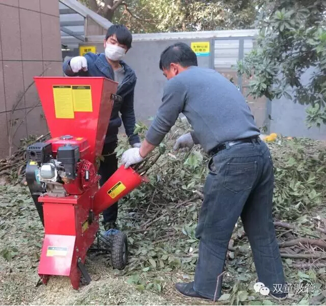 而對園林綠化維護中產(chǎn)生的樹(shù)枝枯葉等生物質(zhì)垃圾,我們則專(zhuān)門(mén)購置了一臺木條粉碎機,對生物質(zhì)垃圾進(jìn)行粉碎處理。該物四四方方,遍體通紅,上一口,側一口,塞進(jìn)去的枝葉全都絞碎成粉末,威力可真是大!
