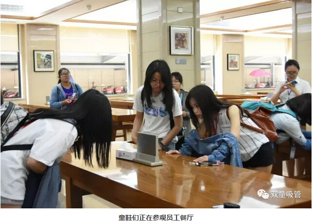 接著(zhù),大家來(lái)到了“雙童”的員工餐廳,樓仲平也介紹道:“‘雙童’有95%以上都是外來(lái)農民工,不僅要解決員工們的工作,更要保障員工的生活。所以,‘雙童’基于人性的需求,一直以來(lái)十分注重對員工的飲食供應,聘請高級廚師每天為員工做出優(yōu)質(zhì)可口的餐飲!員工在餐廳就餐全免費,員工家屬到餐廳就餐也享受半價(jià)優(yōu)惠!另外員工的餐飲都是三菜一湯的標配,員工們使用后的所有碗筷都由食堂阿姨進(jìn)行清洗和消毒。”大家在看到如此精細的就餐環(huán)境和硬件后都十分羨慕員工們呢!