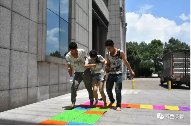第二環(huán)節:用雙手走路,考驗大家協(xié)調能力的時(shí)候到了!各位同學(xué)配合的默契十足嘛!一個(gè)個(gè)爭分奪秒的在指壓板上健步如飛的!看來(lái),吸管妞小瞧大家了。