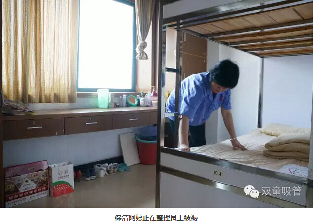 每一層我們都配有兩名打掃衛生的阿姨,進(jìn)行衛生間和寢室的日常打掃。保潔阿姨會(huì )將所有員工寢室的窗戶(hù)、衛生間甚至垃圾桶等各個(gè)角落都擦拭干凈,垃圾不留過(guò)夜,就連員工的被褥每天也有阿姨進(jìn)行整理。