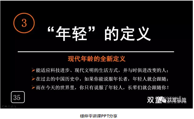 “年輕”的定義:能適應現代全新的生活方式,并與時(shí)俱進(jìn)的人就是年輕人!在過(guò)去的中國歷史中,如果你能說(shuō)服年長(cháng)者,年輕人就會(huì )跟隨;而在今天的世界里,你只有說(shuō)服了年輕人,長(cháng)輩們就會(huì )跟隨你!
