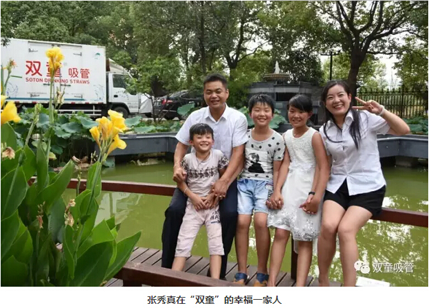 三個(gè)孩子生于公司長(cháng)于公司,一出生就有了幾百個(gè)叔叔阿姨、哥哥姐姐。“雙童”的生活環(huán)境讓孩子們養成了良好的衛生習慣,孩子們總說(shuō),“我有兩個(gè)家,一個(gè)是奶奶家,一個(gè)就是“雙童吸管”——爸爸媽媽的家!”一家五口早已對“雙童”有了深厚的感情!