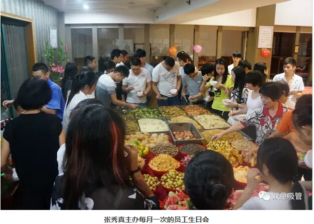 值得一提的是,“雙童”員工們最喜歡的生日會(huì ),基本上都是由后勤部門(mén)負責組織舉辦!如何把生日會(huì )辦好,也是一門(mén)學(xué)問(wèn)。如何根據生日壽星的人數、部門(mén)、年齡段,安排生日會(huì )的形式、飲食、游戲環(huán)節等等,都是張秀真要思考的問(wèn)題。員工們總說(shuō),“雙童”的生日會(huì )每次都玩得很盡興!這些都離不開(kāi)張秀真的用心策劃呢!