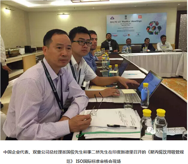2015年10月,雙童公司代表中國企業(yè)派出了六人代表團在印度新德里召開(kāi)的《聚丙烯飲用吸管規范》 ISO國際標準審核會(huì )議