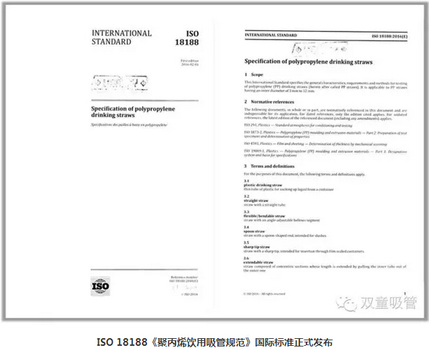 2016年6月27日,瑞士ISO標準化管理組織正式向全球162個(gè)成員國下發(fā)了《聚丙烯飲用吸管規范》ISO國際標準文本。這也是金華市首件、浙江省第28件ISO國際標準向全球各成員國正式發(fā)布。