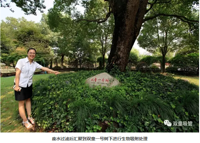 所謂“廢水收集處理循環(huán)回用系統”,其實(shí)就是將員工的生活廢水過(guò)濾后匯聚到“ 雙童一號樹(shù)”下進(jìn)行生物吸附處理,再流入中水儲存池,并為廠(chǎng)區所有衛生間的馬桶沖水、綠化噴淋和道路清洗、車(chē)輛清洗所用,使公司的員工生活用水量節省了65%,每年為公司節省水費支出40多萬(wàn)元!
