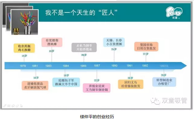 1994年4月,偶然的機會(huì )讓我再次選擇“一根小吸管”作為重新創(chuàng )業(yè)的起步,無(wú)數次的創(chuàng )業(yè)失敗使我在經(jīng)營(yíng)“雙童”之后選擇了更多的堅守和專(zhuān)注,從而逐漸拋棄了一夜暴富的急功近利,減少了唯利是圖的投機心理,深刻認知到創(chuàng )辦企業(yè)的意義所在,始終關(guān)注事物本身,全身心投入把事情做到更好。