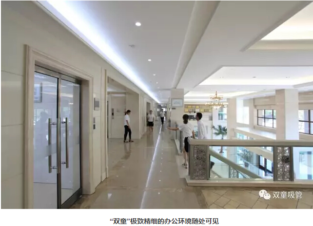 除了先進(jìn)的建筑理念和高品質(zhì)的建筑材料外,“雙童”廠(chǎng)房所采用的硬件標準之高也超乎一般制造業(yè)企業(yè)的想象:所有基礎建設采用商品混泥土澆筑、用大理石鋼掛的綜合樓外墻、銅制的綜合樓大門(mén)、自動(dòng)感應的玻璃門(mén)、鋼化玻璃特制的幕墻……讓人一走進(jìn)“雙童”,很容易誤以為是一家對外營(yíng)業(yè)的高級酒店。