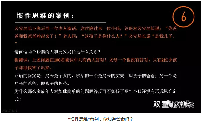 據測試,上述問(wèn)題在100名被試中只有兩人答對!父母一個(gè)也沒(méi)有答對,只有2位小孩子卻很快答了出來(lái)。