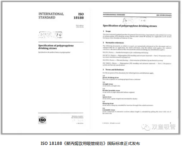 2016年6月27日,瑞士ISO標準化管理組織正式向全球162個(gè)成員國下發(fā)了《聚丙烯飲用吸管規范》ISO國際標準文本。這也是金華市首件、浙江省第28件ISO國際標準向全球各成員國正式發(fā)布。