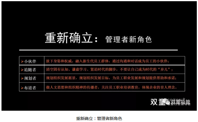 追隨者:管理者應清空固有認知,謙虛向年輕人學(xué)習,緊追時(shí)代步伐,不要讓自己成為時(shí)代的“棄兒”;