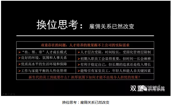 洞察巨變,從“指令”到“對話(huà)”:樓仲平通過(guò)總經(jīng)理李二橋以及吸管妞周上的案例分享了新時(shí)代背景下雇傭關(guān)系已然改變。