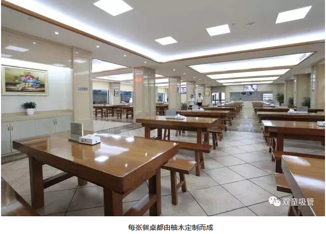 優(yōu)質(zhì)硬件是保障優(yōu)質(zhì)餐飲的前提,所以,“雙童”五星級員工餐廳內的設施都配備了最好的硬件,以保障餐飲的品質(zhì)!就拿網(wǎng)友熱議的員工餐廳這張桌子來(lái)說(shuō),一張就要15000元,餐廳內光光餐桌的總投資就達到70多萬(wàn)。每一張桌子重達四五百斤,是樓仲平特地去東陽(yáng)市中國紅木家具城挑選由“木中之王”的柚木定制而成,特點(diǎn)是紋理線(xiàn)條優(yōu)美,所以每張餐桌的顏色都很漂亮,十分細膩!