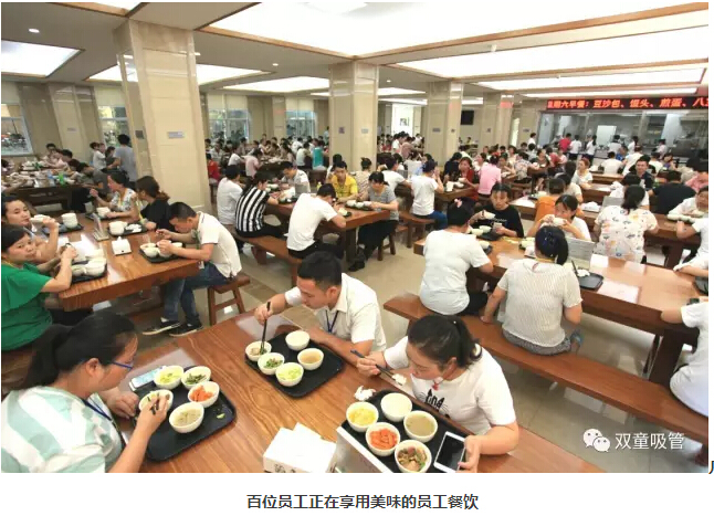 除了給員工提供餐飲之外,“雙童”也鼓勵員工的家人一起在餐廳就餐,員工家屬在食堂就餐收取一半成本費用,盡量解決員工在工作之余不再忙于家務(wù)!
