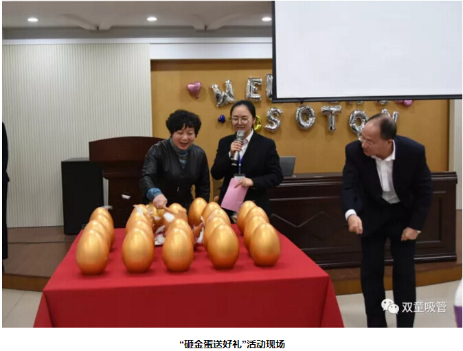 接下來(lái),我們也舉辦了“砸金蛋送好禮”活動(dòng)!隨著(zhù)一個(gè)個(gè)金蛋被砸開(kāi),各種好禮也隨著(zhù)禮花“破殼而出”!蘋(píng)果手表,金華火腿禮盒,浪莎襪禮盒…… 在拿到一件件豐厚禮品后大家笑得都快合不攏嘴了!