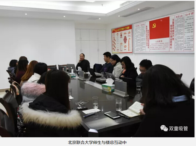 參觀(guān)結束后,部分團隊也和樓仲平進(jìn)行了溝通交流,如北京聯(lián)合大學(xué)的師生專(zhuān)程從北京趕來(lái)義烏游學(xué),了解“雙童”的商業(yè)模式。樓仲平圍繞科學(xué)發(fā)展觀(guān)分享了“雙童”商標的由來(lái)、節能降耗設施、員工關(guān)懷、企業(yè)自傳播等經(jīng)營(yíng)理念。樓仲平通過(guò)“雙童”的發(fā)展告訴同學(xué)們企業(yè)的發(fā)展離不開(kāi)“用心”二字,只有極致的用心才能真正把企業(yè)做好,才符合社會(huì )發(fā)展觀(guān)。最后,樓仲平也鼓勵同學(xué)們創(chuàng )業(yè)和就業(yè)的界限已經(jīng)打破,無(wú)論是創(chuàng )業(yè)還是就業(yè)都要用極致用心的態(tài)度對待!