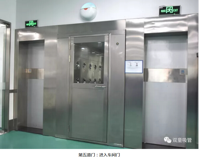 5.員工們風(fēng)淋后經(jīng)過(guò)第五道車(chē)間入口門(mén),進(jìn)入車(chē)間進(jìn)行生產(chǎn)工作。