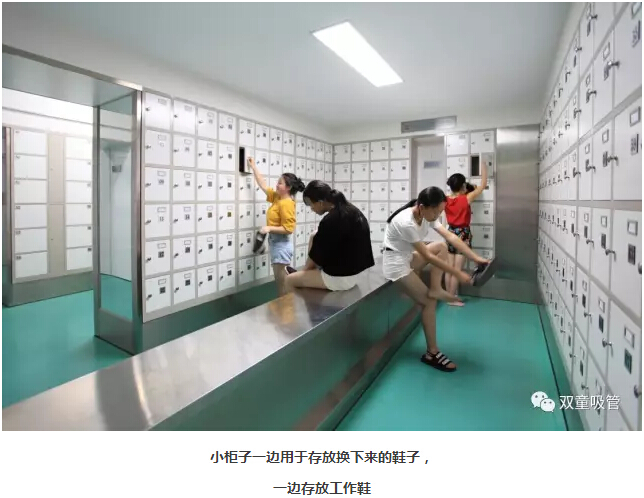 2、員工來(lái)到第一更衣區,將自己的私人衣物儲存在柜子中。