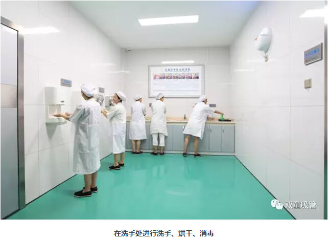 4、整理完衣物后,來(lái)到洗手消毒間,進(jìn)行洗手、烘干、消毒。