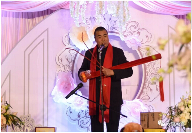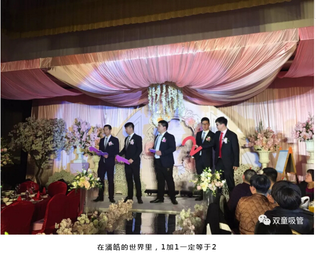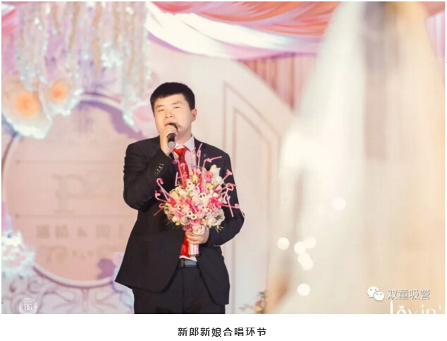 婚禮現場(chǎng)的亭子代表著(zhù)新人的工作單位——“雙童吸管”