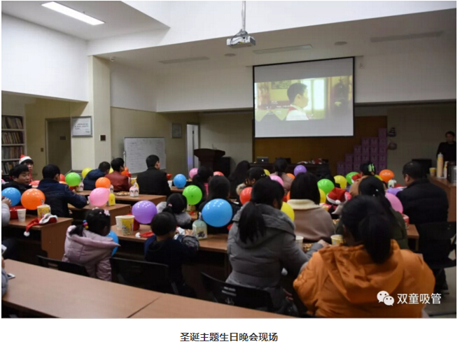 生日party撞上圣誕周,我們也特地為每位壽星們都準備了圣誕禮物??炜?,壽星們人手一個(gè)平安果,頭上還有一頂可愛(ài)的圣誕帽子,可愛(ài)極了!在生日會(huì )現場(chǎng),“雙童影院”為壽星們放映了喜劇電影《縫紉機樂(lè )隊》,在精彩的電影情景中,在濃厚的圣誕氛圍中,壽星們共同度過(guò)了美好的夜晚!