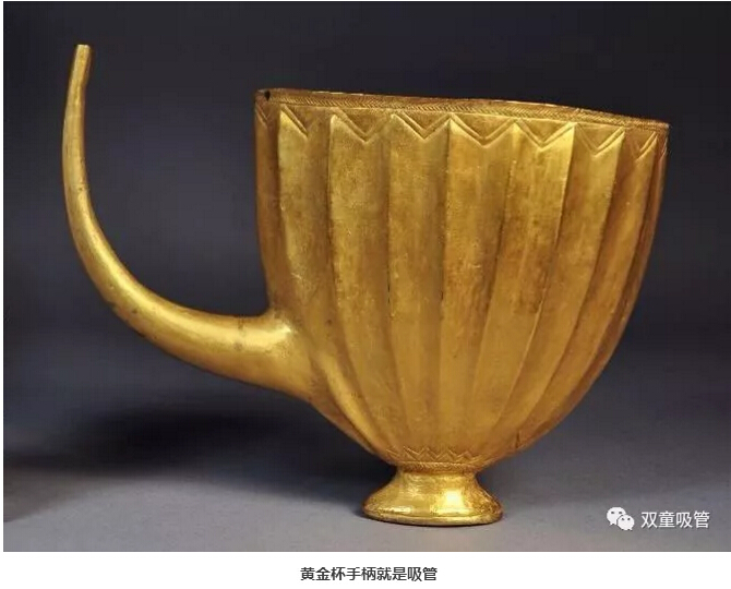 在現在的伊拉克南部,歷史學(xué)家們發(fā)現了亞述王朝初期的烏爾城王后普阿比的墓室中,她的黃金杯手柄就是吸管,她可以通過(guò)手柄來(lái)飲用杯子里的啤酒。同時(shí),歷史學(xué)家們還在墓室中發(fā)現了一根用黃金和天青石做的吸管。
