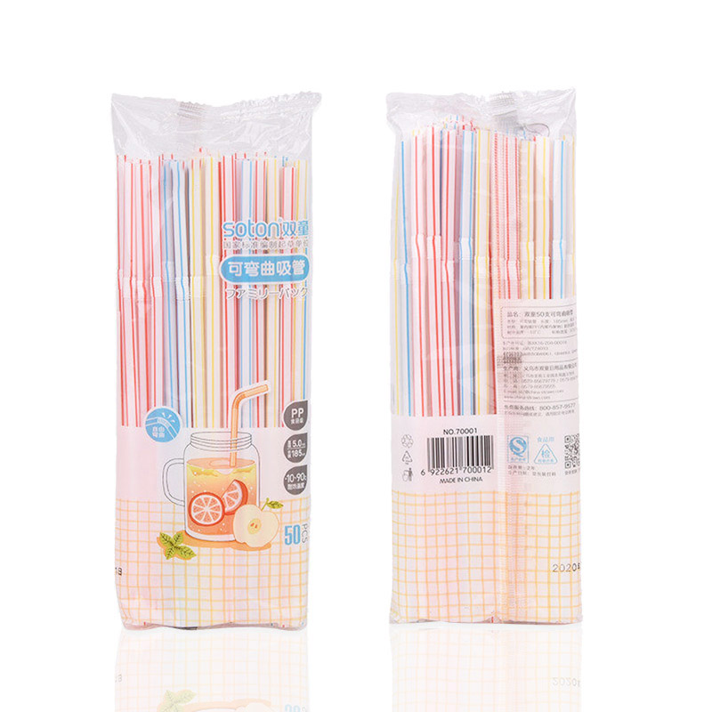 70001雙童50支彩條色普通彎吸管